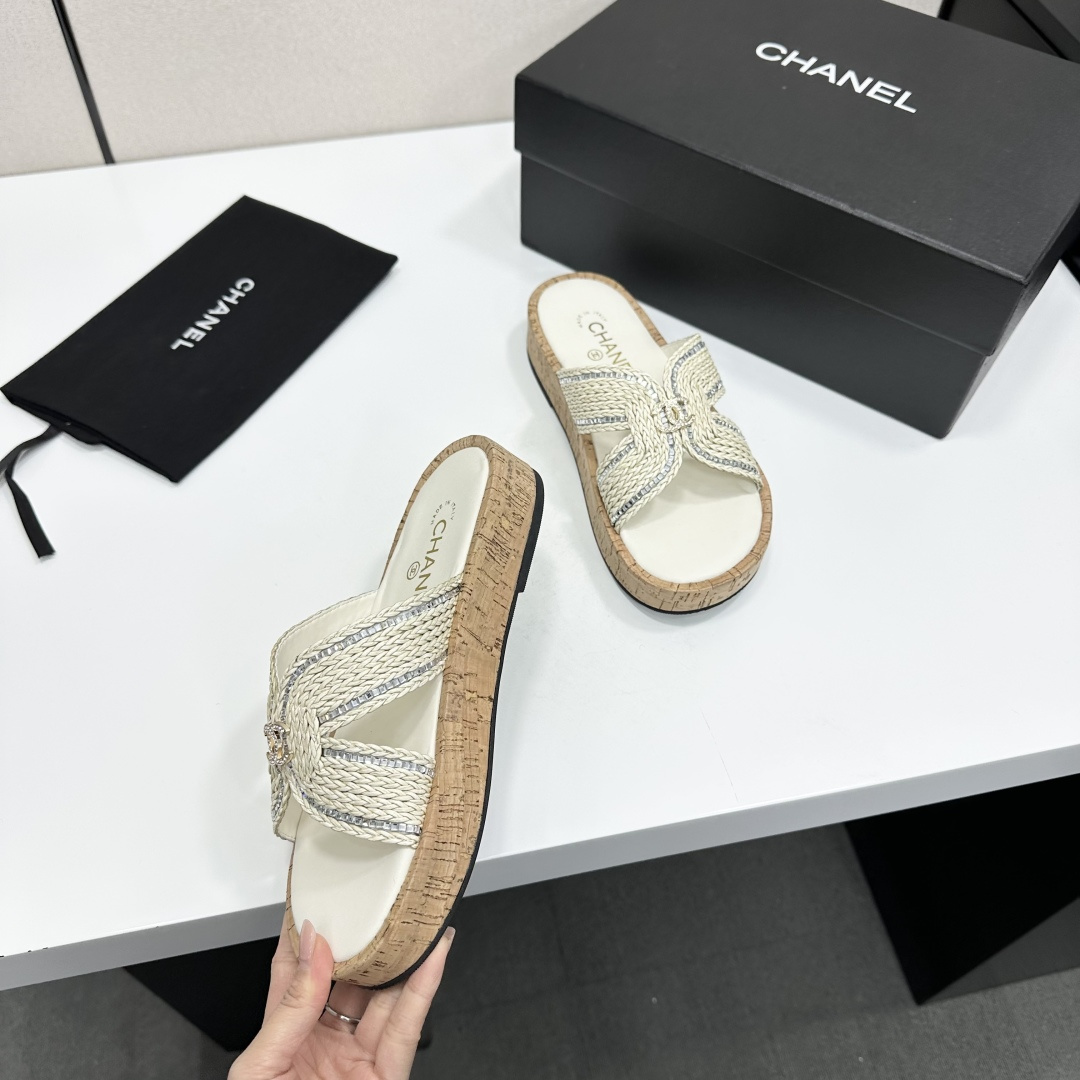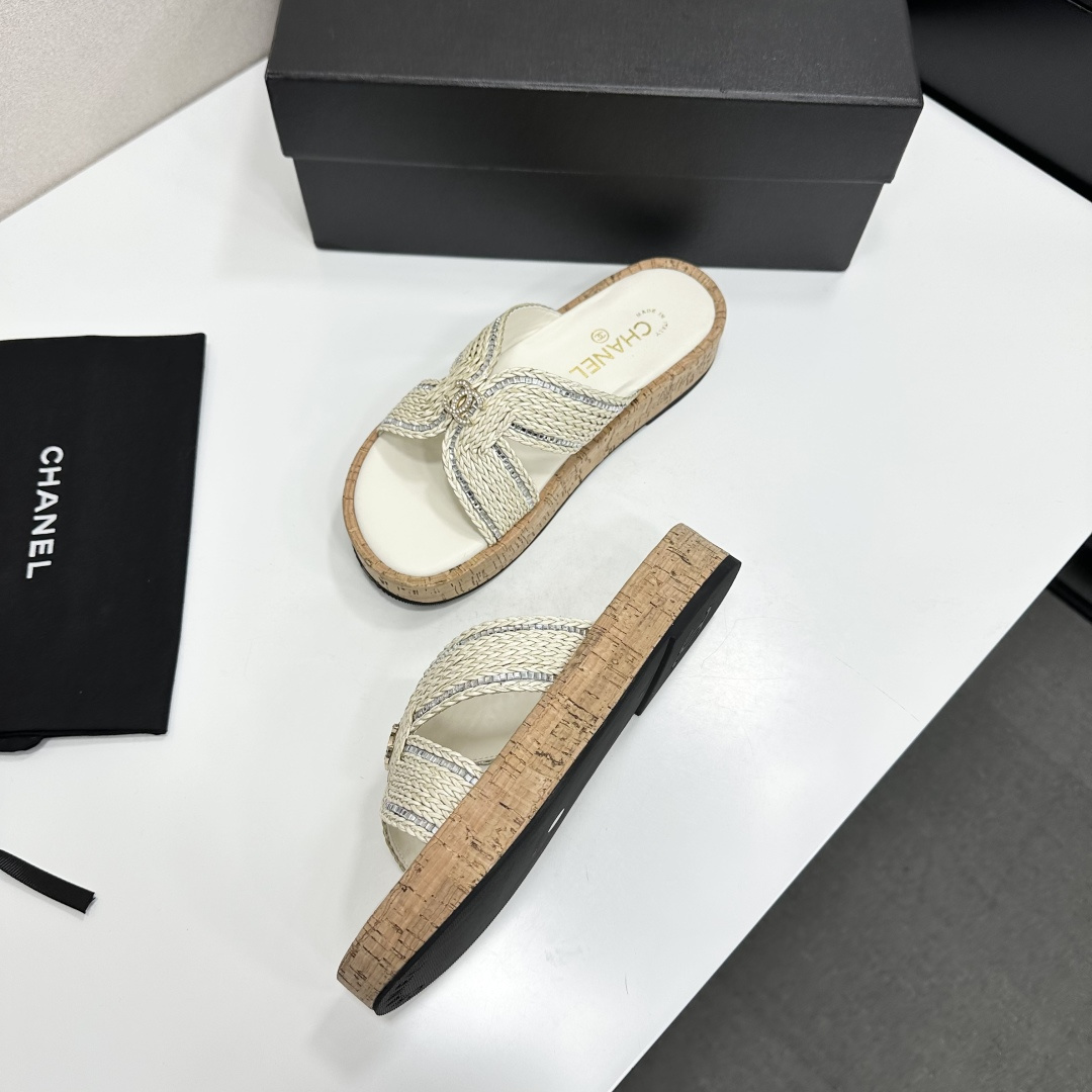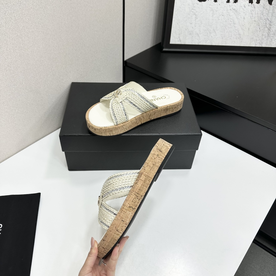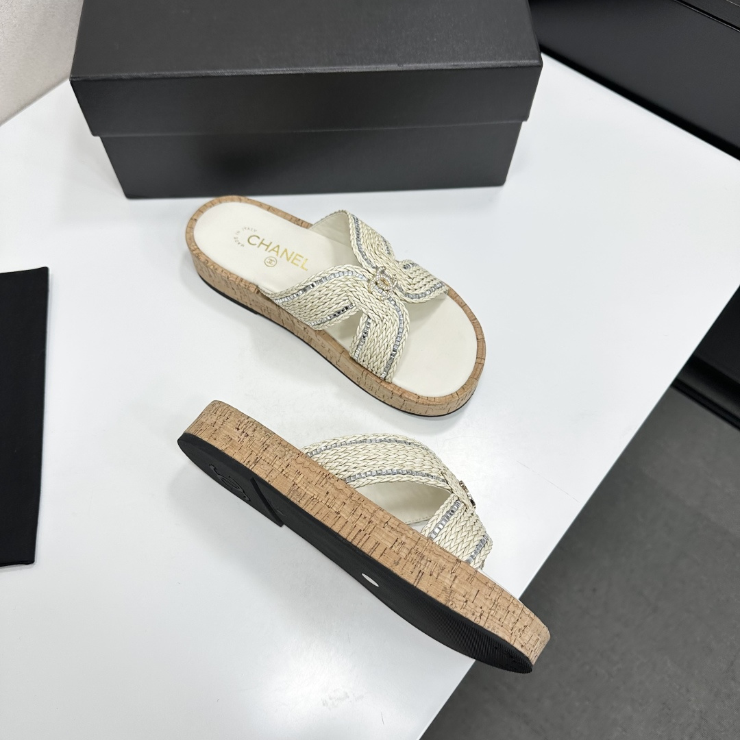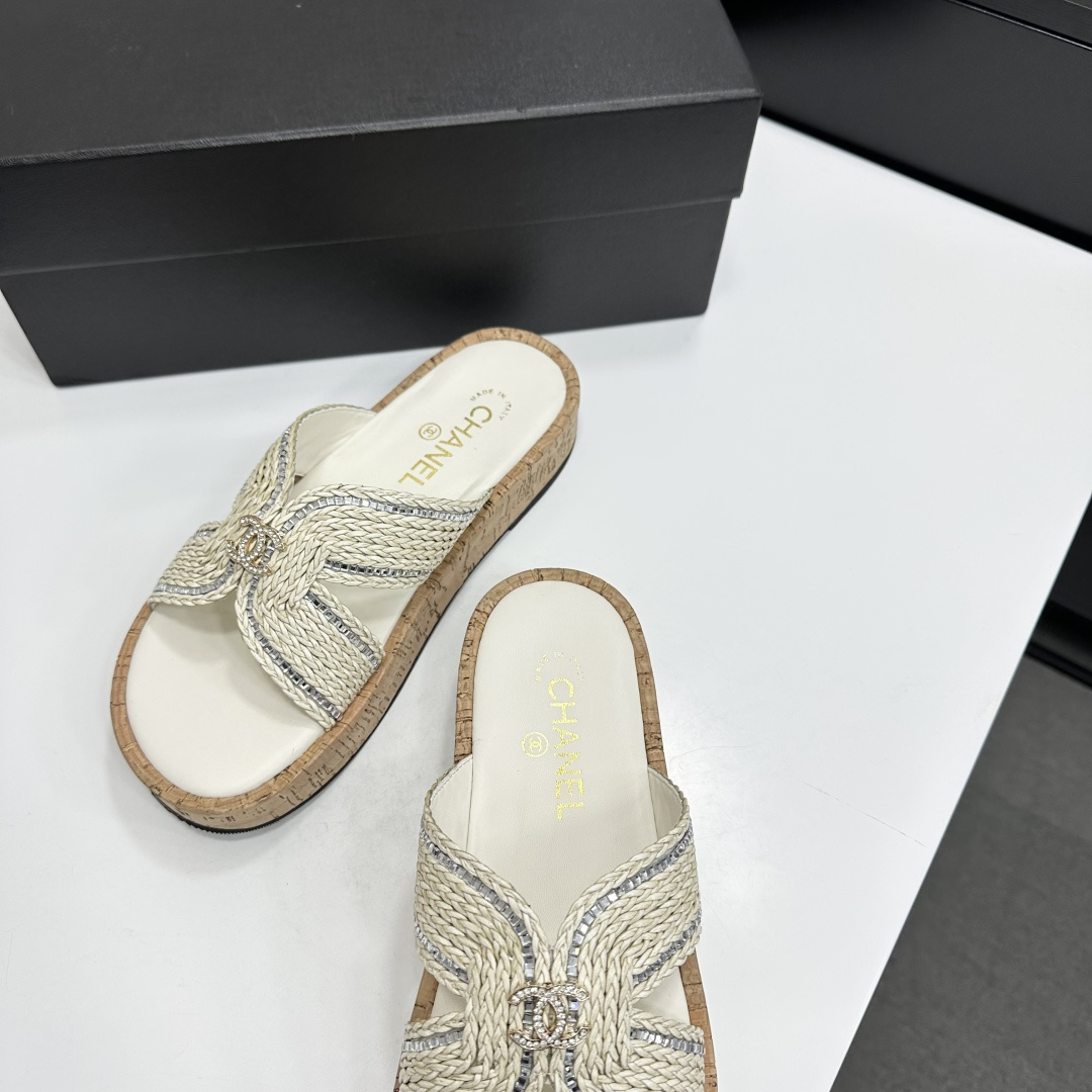 Chanel Raffia CC Platform Sandals