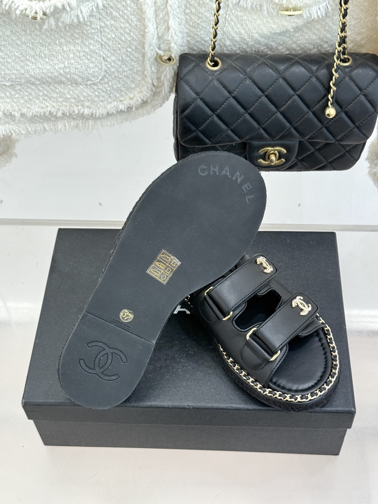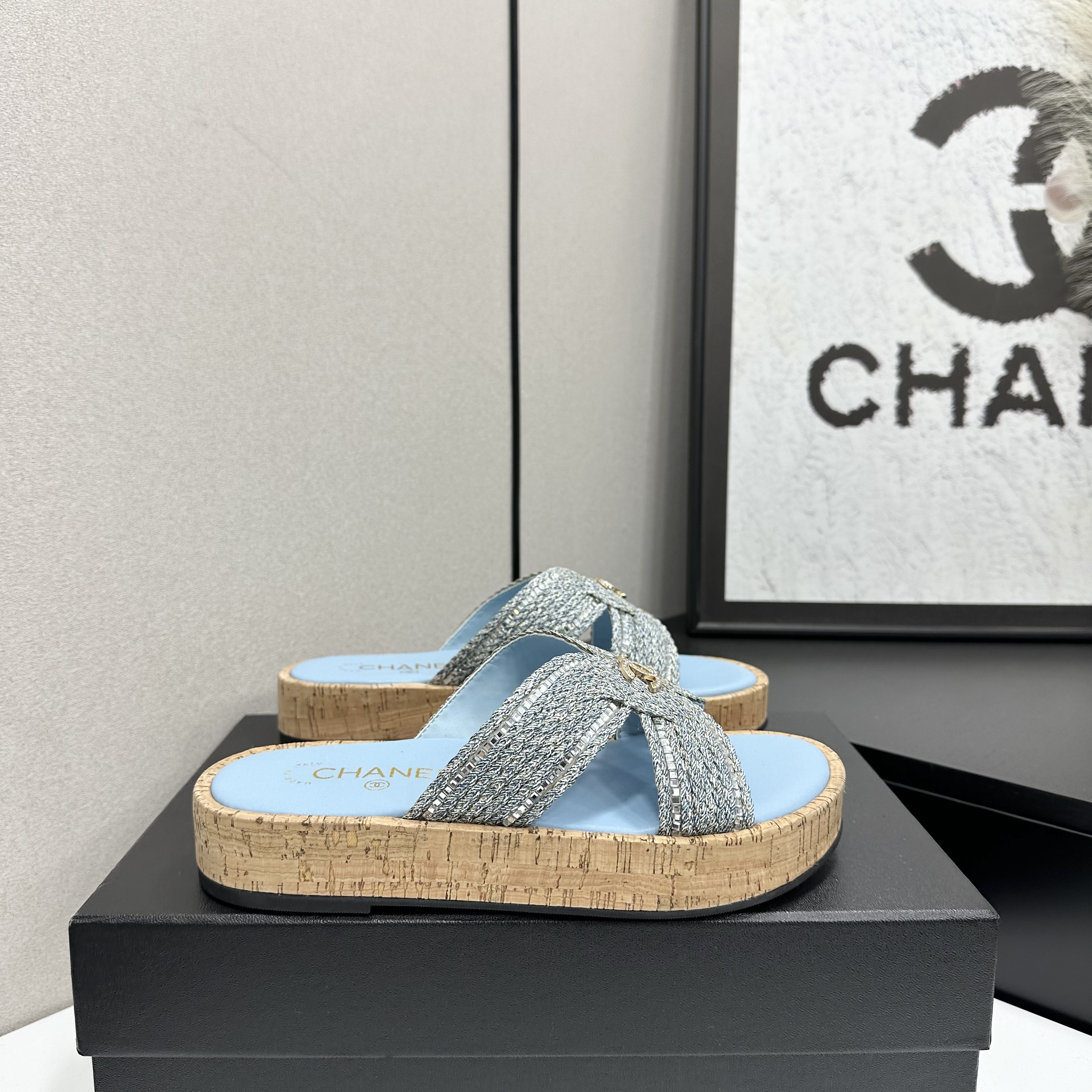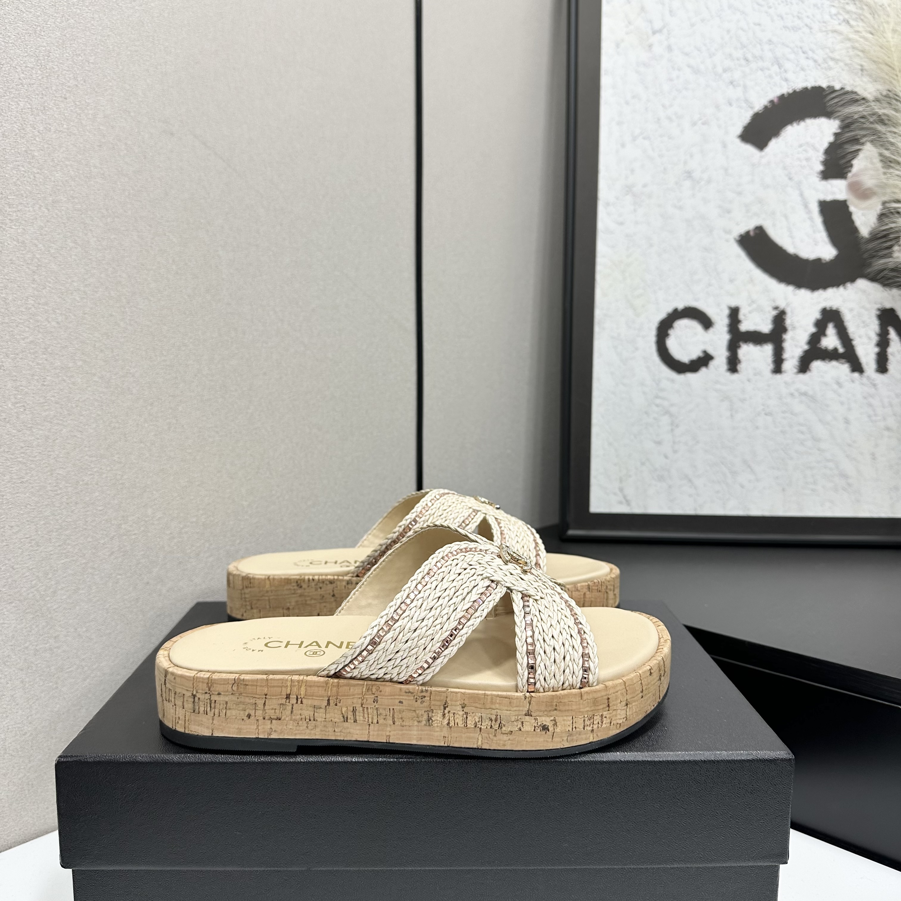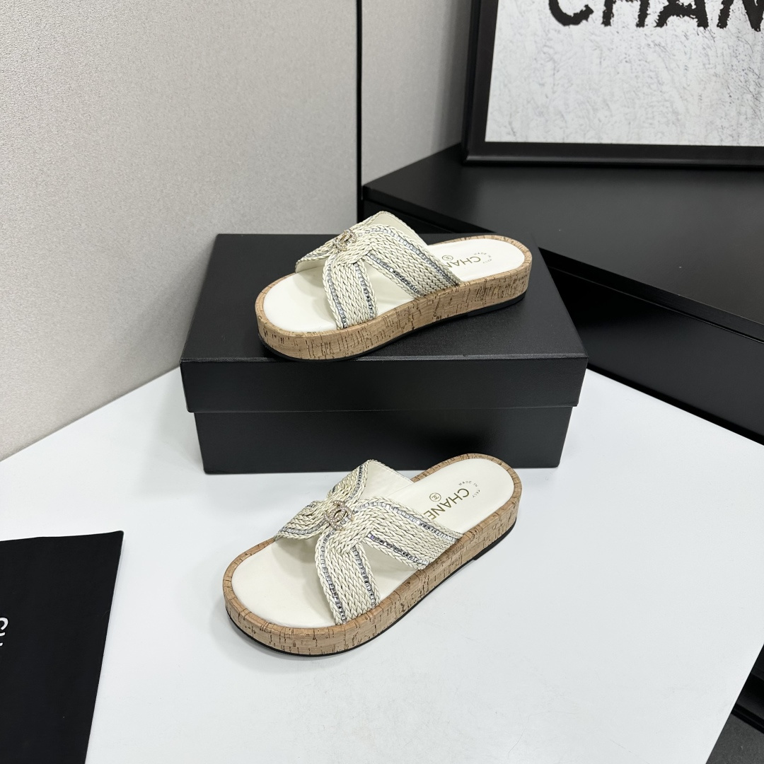 Chanel Raffia CC Platform Sandals