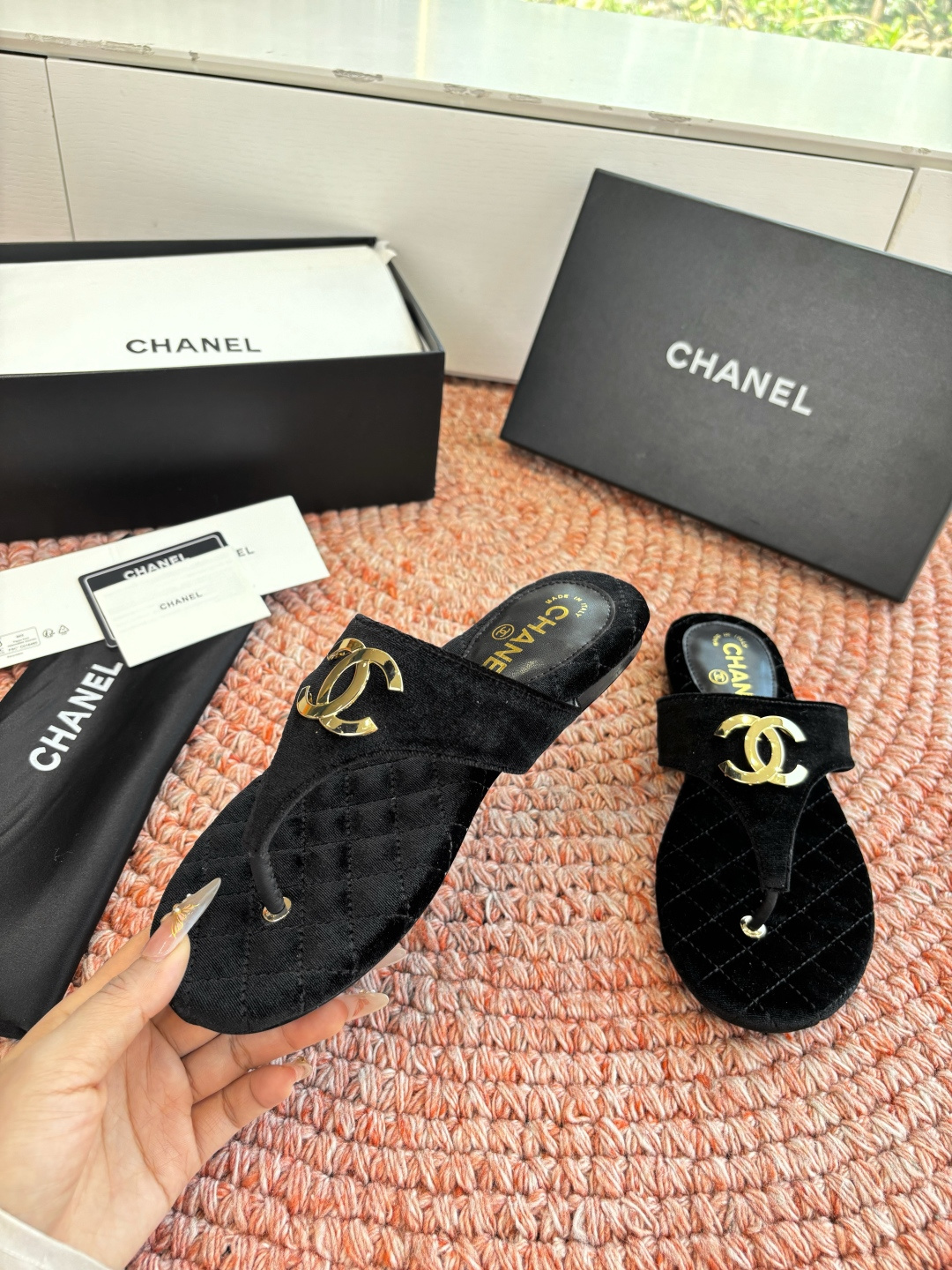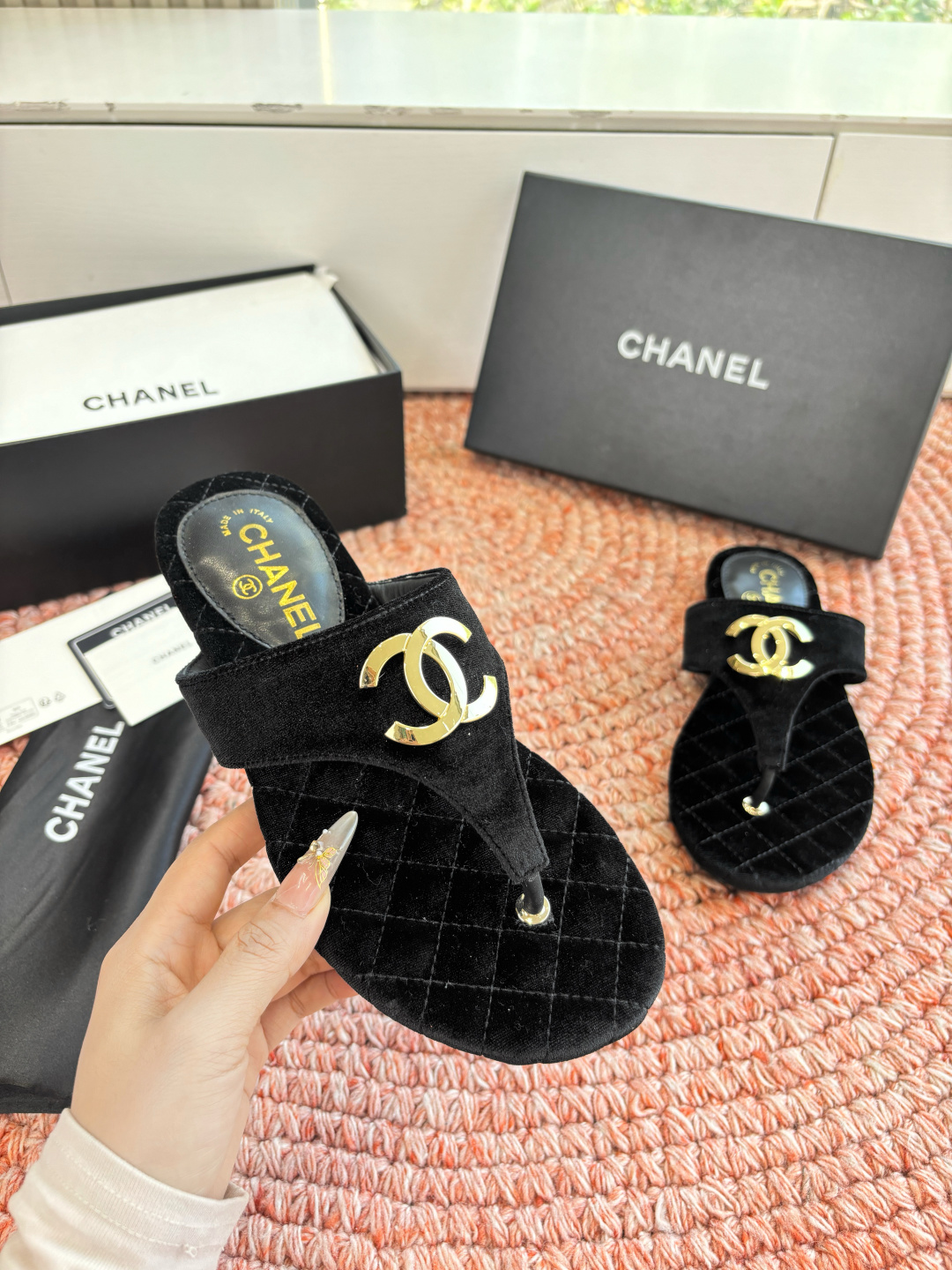 Chanel CC Logo Thong Sandals